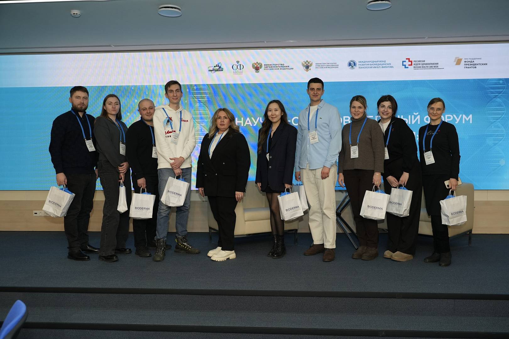 Молодых ученых со всей странысобрал в Москвеюбилейный, V Научно-образовательный форум «Медицина молодая», который прошелв декабре 2025 года в конгресс-зале Сеченовского университета. В числе участников команда из ФГБУ НМИЦ «ЦНИИСиЧЛХ» Минздрава России во главе с наставником А.П. Ведяевой, зам. директора по научно-организационной работе.