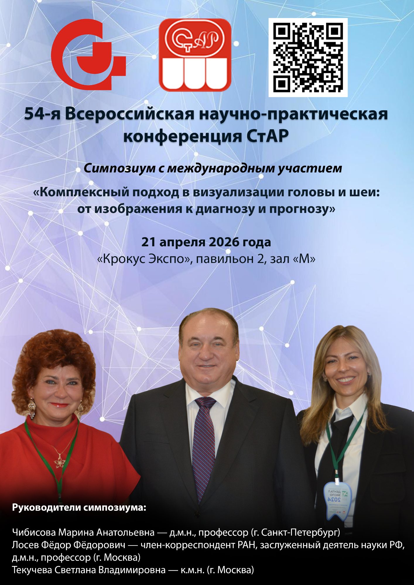 Приглашаем на симпозиум с международным участием «Комплексный подход в визуализации головы и шеи: от изображения к диагнозу и прогнозу», который пройдет в рамках 54-й Всероссийской научно-практической Конференции СтАР.