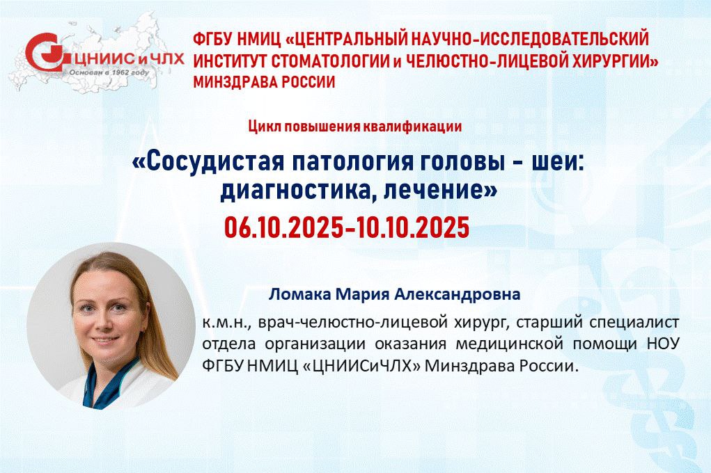 Приглашаем 06.10.2025-10.10.2025 на цикл повышения квалификации «Сосудистая патология головы-шеи: диагностика, лечение» Ломака М. А.
