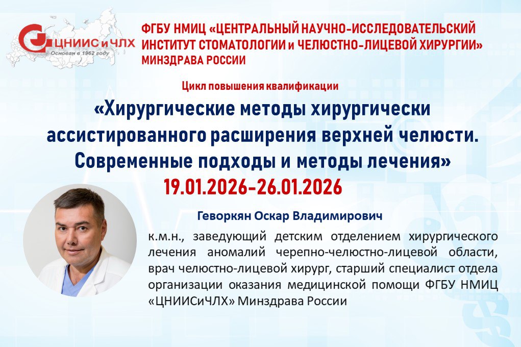 Цикл повышения квалификации «Хирургические методы хирургически ассистированного расширения верхней челюсти. Современные подходы и методы лечения»